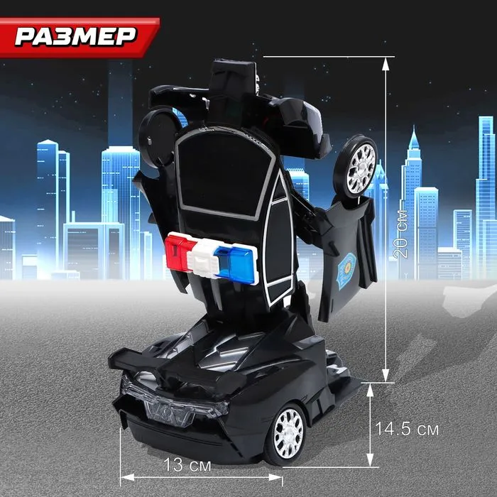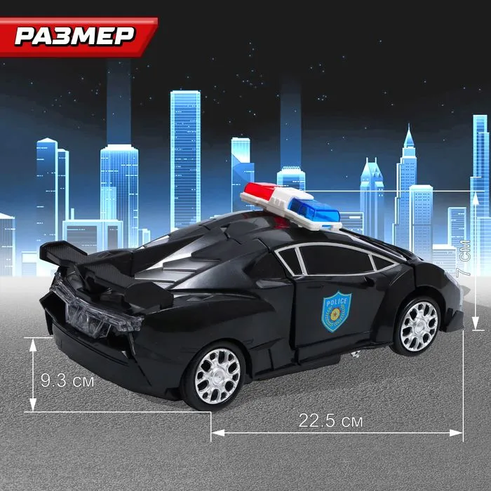 Полицейская машина с эффектами становится боевым роботом! Трансформер с огнями и звуком — это интерактивная игрушка для мальчиков. Способна самостоятельно двигаться и менять форму.