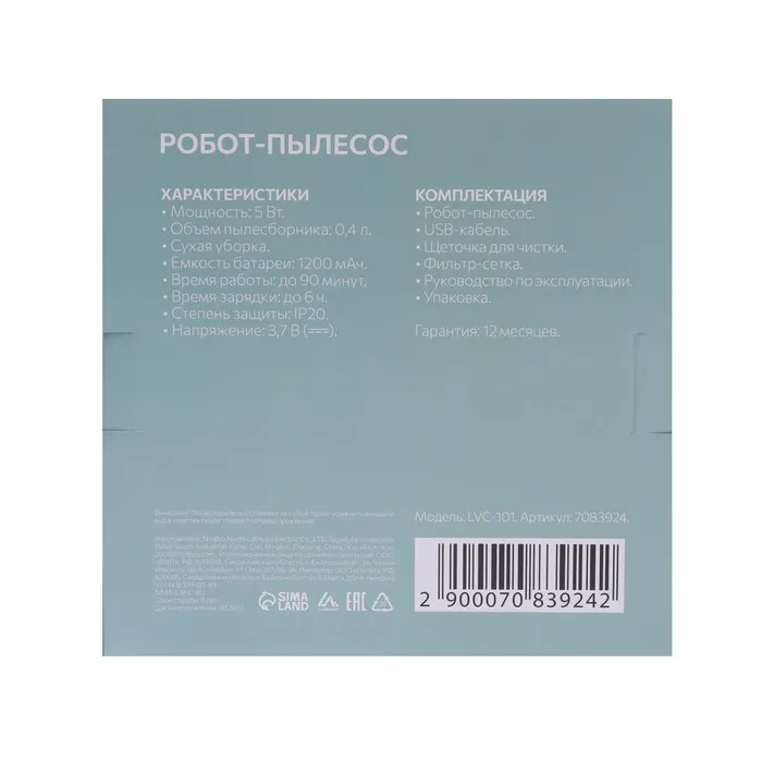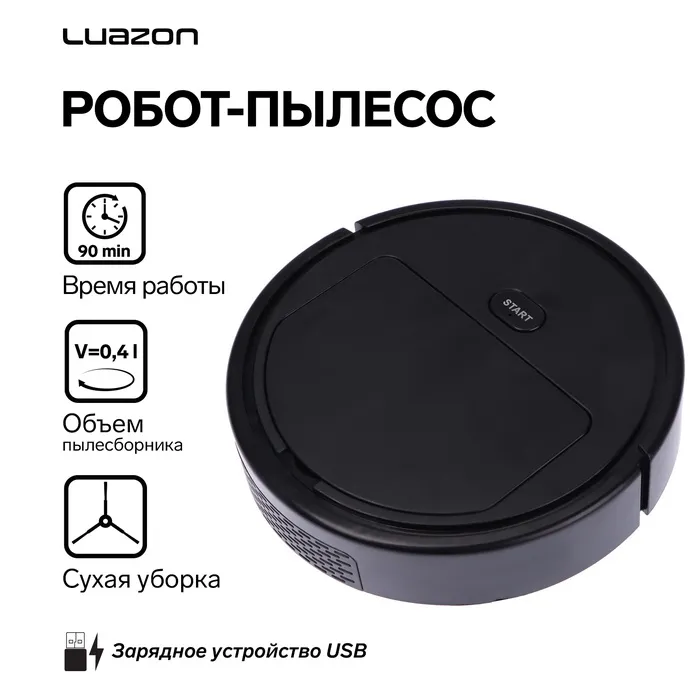 Робот-пылесос Luazon LVC-101, сухая уборка, 0.4 л, от USB, 5 Вт, 1200мА/ч, чёрный — Характеристики
