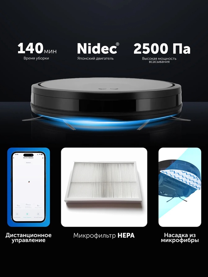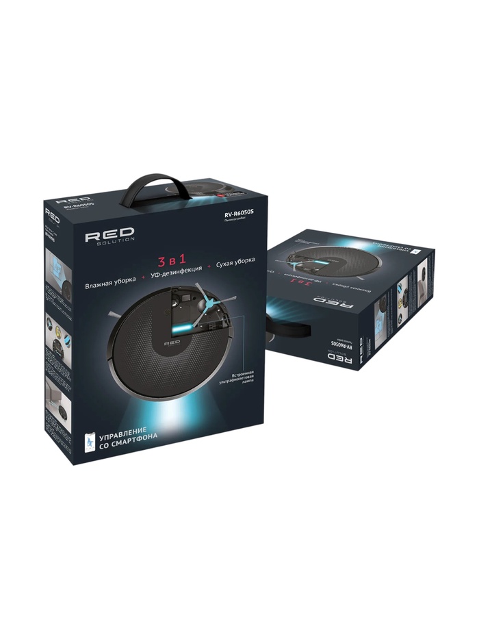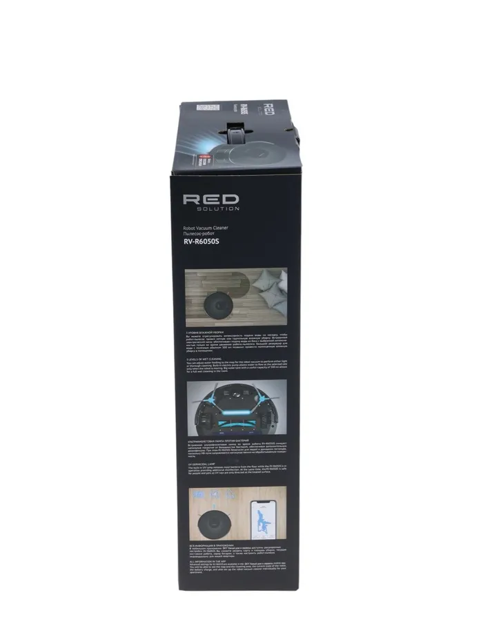 Робот-пылесос RED Solution RV-R6050S, 25 Вт, 2600 мАч, сухая/влажная уборка, Wi-Fi, 0.45 л, ПДУ — Характеристики