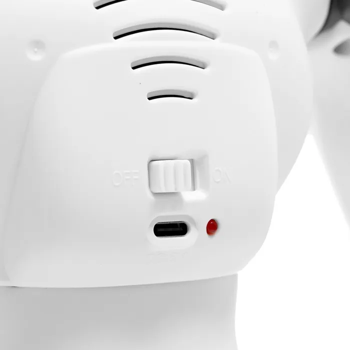 - Световые эффекты: горят глаза, лампочка на переднем корпусе, подсвечиваются динамики на голове.