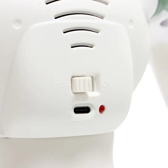 - Робот передвигается вперёд, назад, влево и вправо, способен воспроизводить музыку и танцевать. Пускает дым.