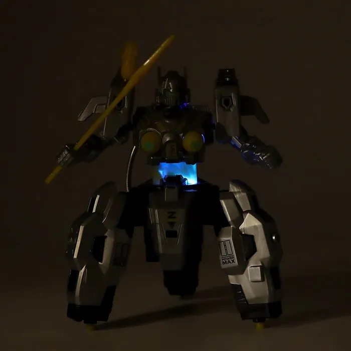 - Световые эффекты: робот излучает синий и красный свет, создавая захватывающую атмосферу во время игры.