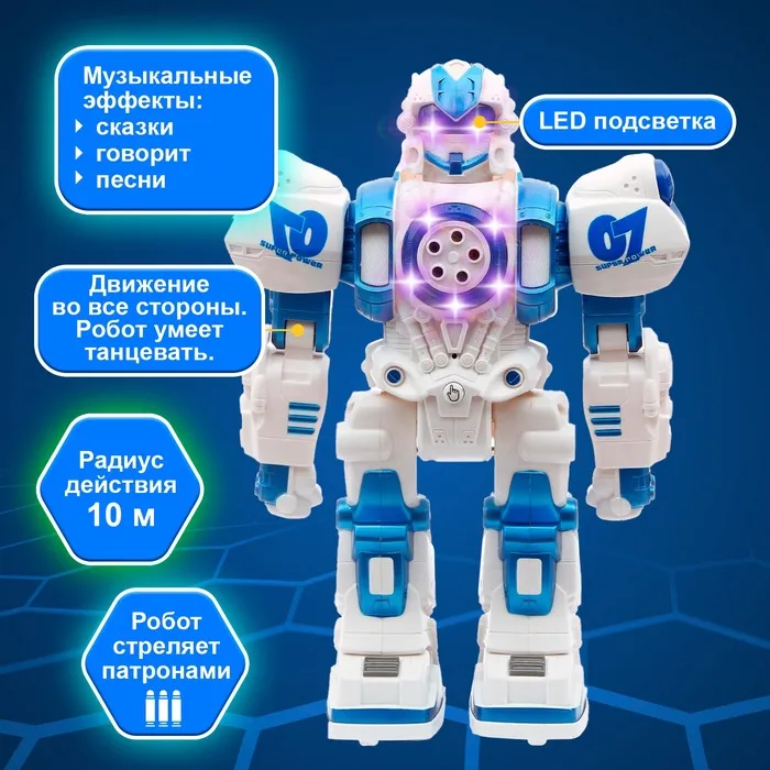 - Свет и звук: яркие световые эффекты и реалистичные звуки создают атмосферу настоящего робота из будущего. Каждое движение сопровождается вспышками света и забавными фразами, что делает игру ещё более захватывающей.