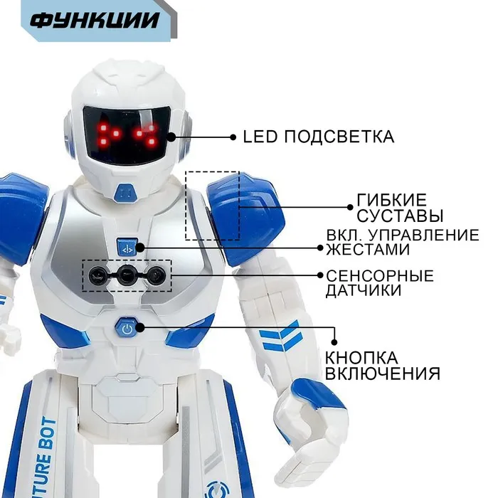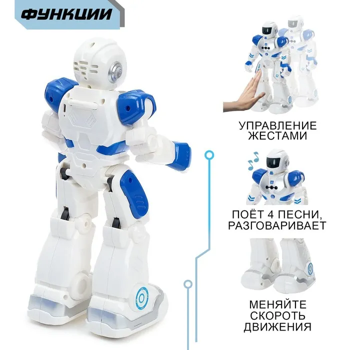 Робот радиоуправляемый «Смарт бот», световые и звуковые эффекты, сенсорный датчик, двигается во все стороны, русский чип, цвет синий — Характеристики