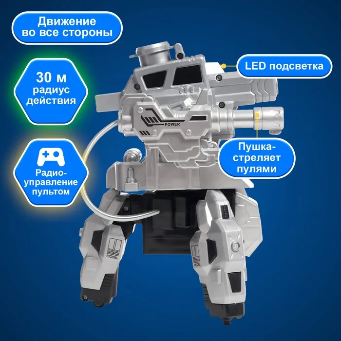 Радиоуправляемый робот с функцией стрельбы гелевыми пулями — это увлекательная игрушка для детей от 8 лет, которая станет ярким подарком на любой праздник. Модель сочетает в себе классический дизайн робота и современные интерактивные функции. Управление осуществляется с помощью пульта, а радиус действия составляет до 30 метров.