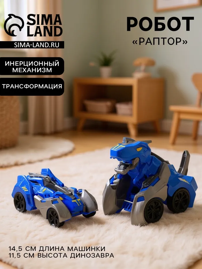 Робот «Раптор», инерционный, трансформируется, цвет синий — Характеристики