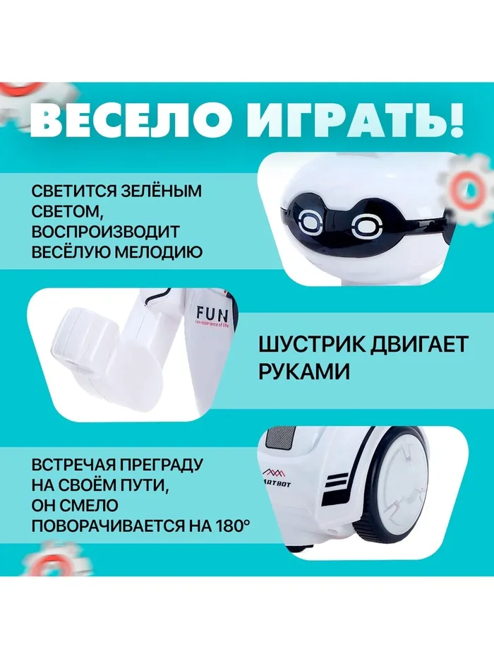 Знакомьтесь с умным и весёлым роботом! Робот «Шустрик» – это яркий и подвижный друг, который подарит вашему ребёнку море радости и удивительных моментов. Световые и звуковые эффекты, а также забавные движения делают его идеальным выбором для детей. Это не просто игрушка — это настоящий герой для игр!