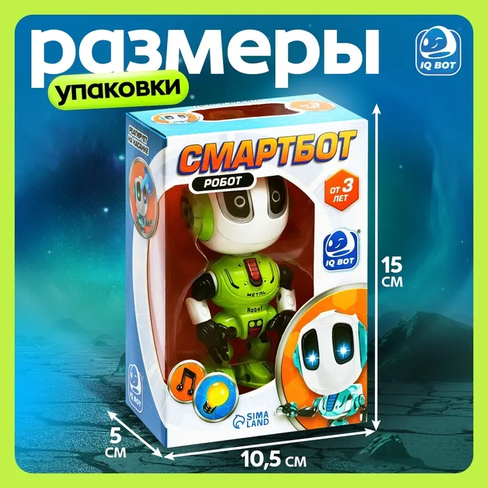 Знакомьтесь с умным и весёлым роботом будущего! Робот «Смартбот» – это яркий зелёный друг, который реагирует на прикосновения, повторяет слова забавным голосом и создаёт атмосферу радости своими световыми и звуковыми эффектами. Идеально подходит для детей. Это не просто игрушка — это настоящий компаньон для игр и развлечений!