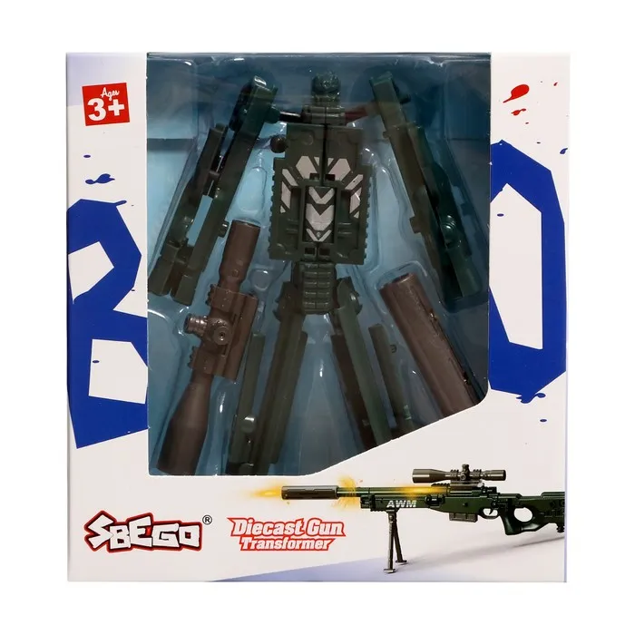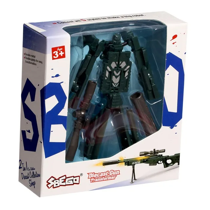Трансформер в виде оружия станет отличным выбором для юных фанатов роботов и коллекционеров. Модель легко превращается из боевого робота в снайперскую винтовку, радуя ребёнка неожиданными изменениями формы. Простая конструкция без лишних деталей подойдёт даже для самых маленьких любителей трансформеров.