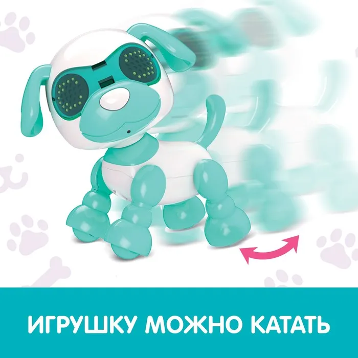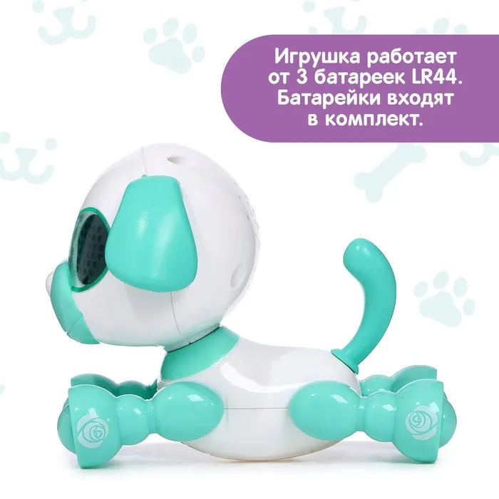 Робот собака «Умный дружок», интерактивный: с записью звуков, свет, звук, сенсорный, музыкальный, на батарейках, бирюзовый — Характеристики