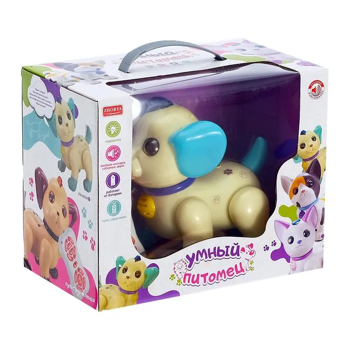 Робот собака «Умный питомец» ZHORYA, на пульте управления, интерактивный: звук, свет, танцующий, музыкальный, на батарейках, на русском языке, бежево-коричневый — Характеристики