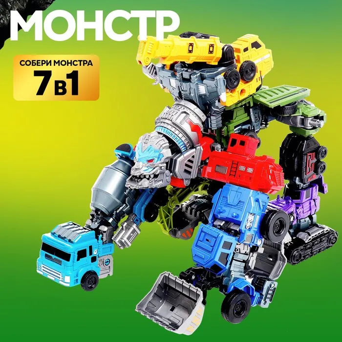 - 7 в 1: 7 роботов-машинок собираются в одного большого робота.