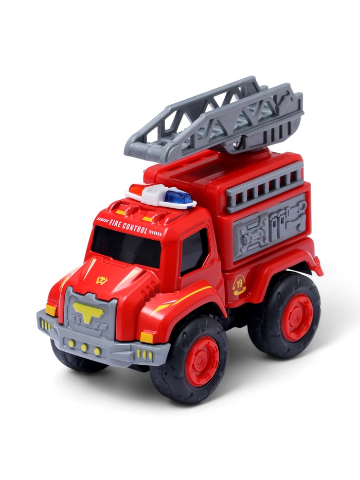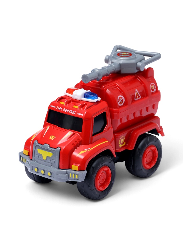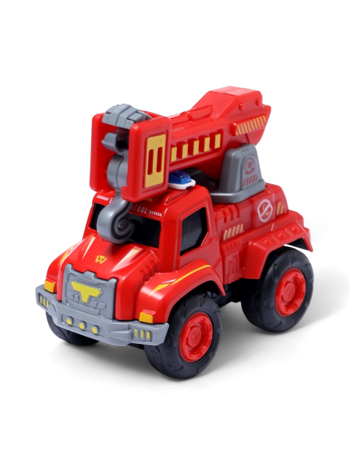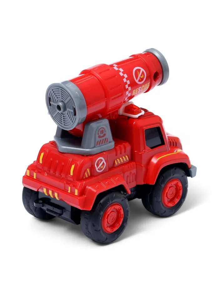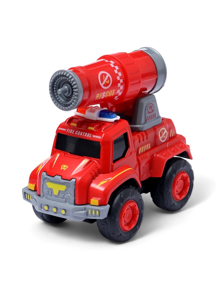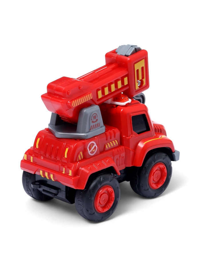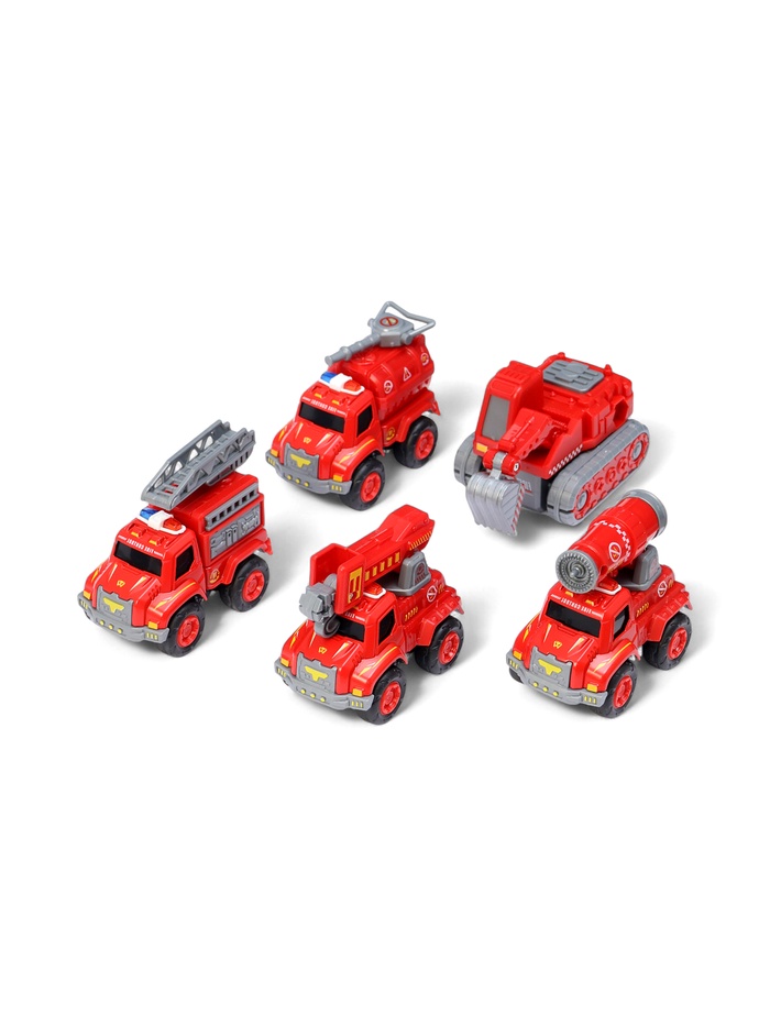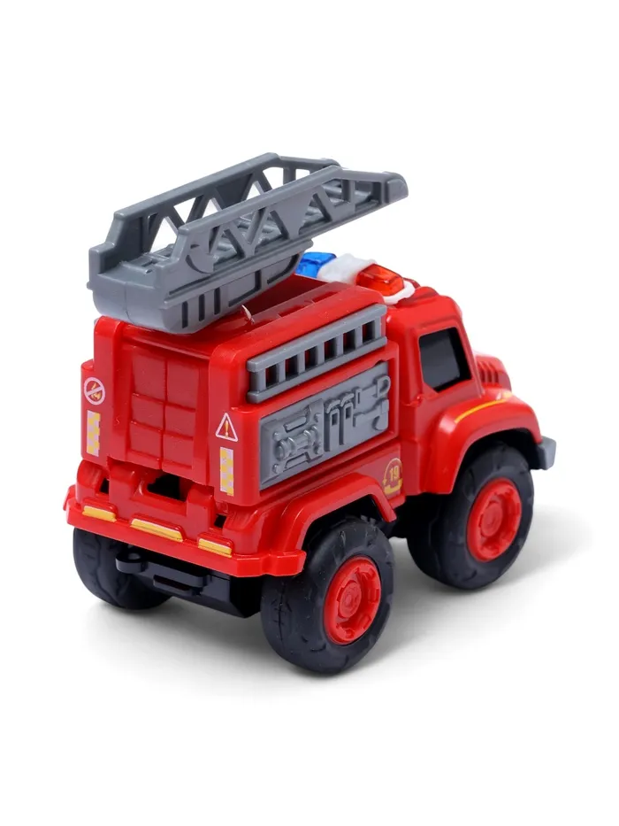 - Тематика спасателей: все элементы выполнены в стиле спецтехники — пожарные машины. Ребёнок сможет придумывать захватывающие сценарии спасения.