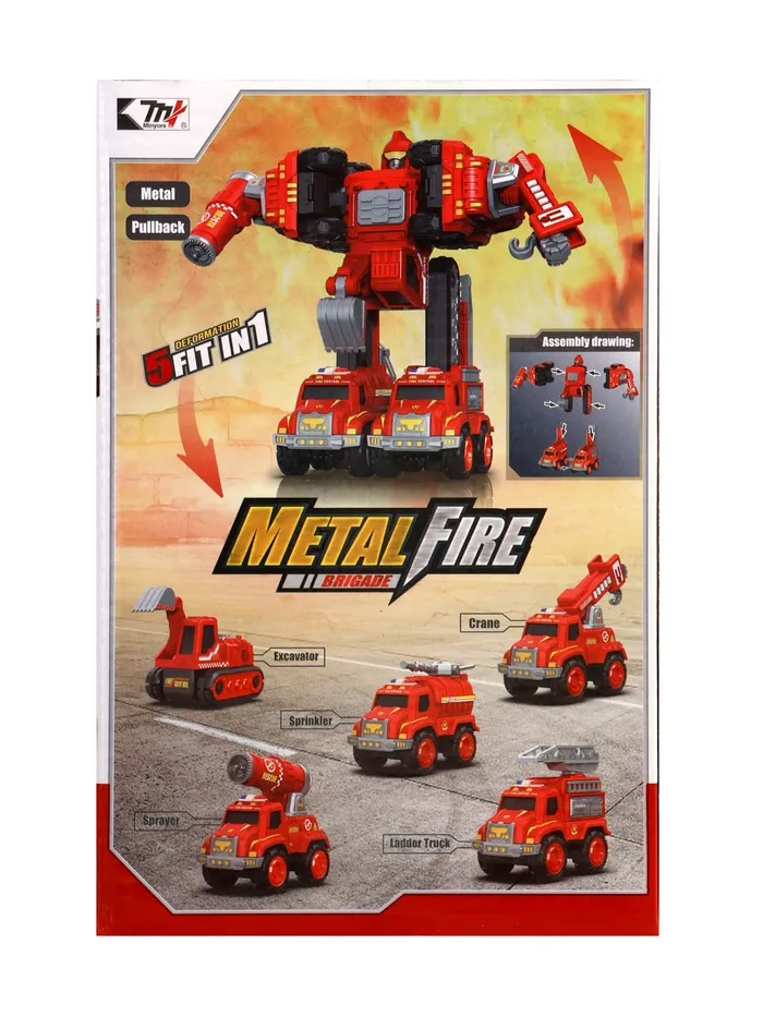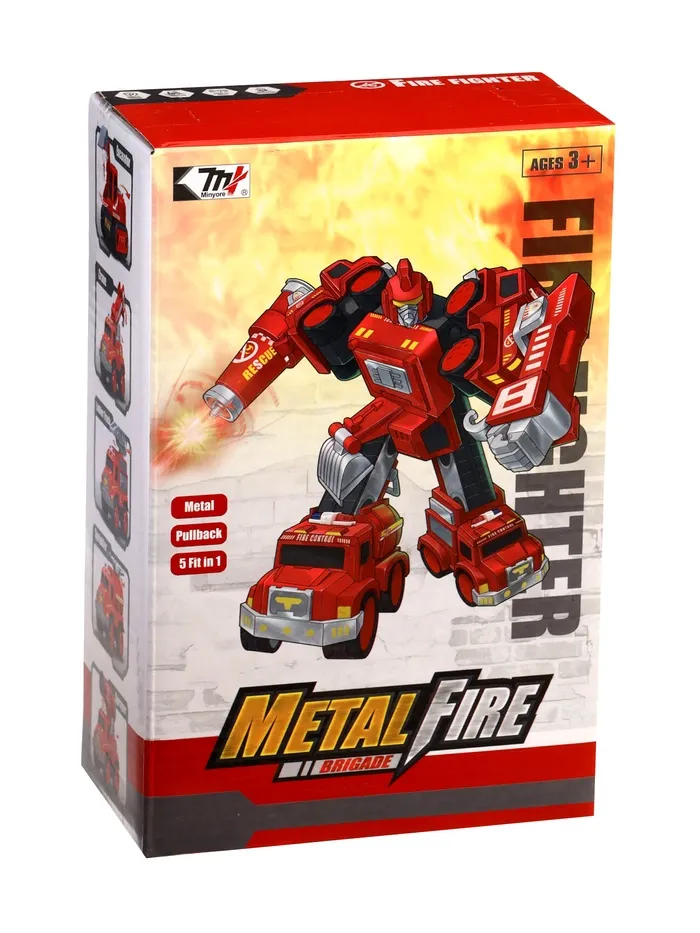 Создай мощного робота-спасателя из отважной команды! Трансформер «Огнеборец» 5 в 1 — это увлекательный конструктор для детей от 3 лет. Пять машинок экстренных служб объединяются в одного большого робота с подвижными элементами.