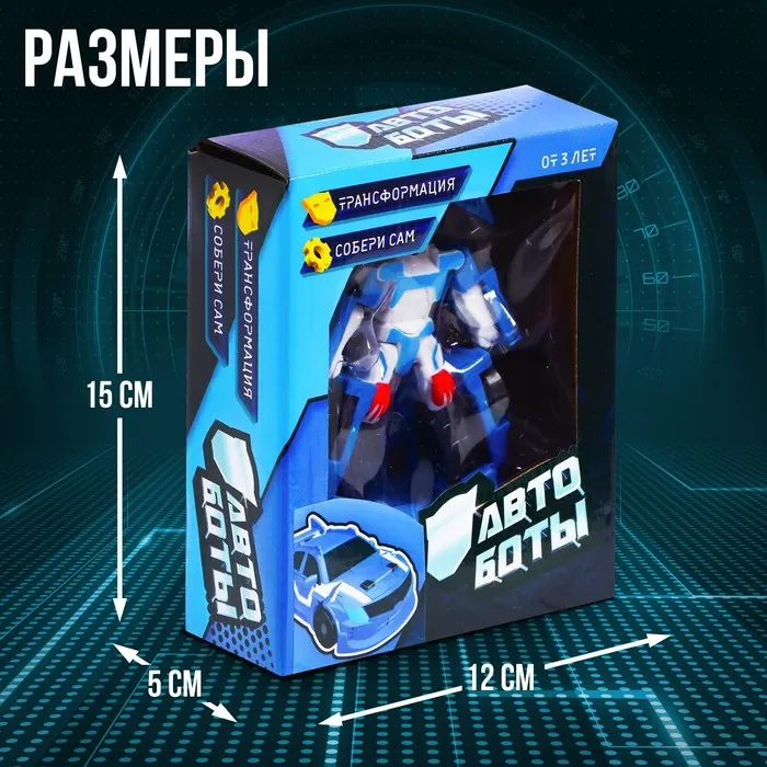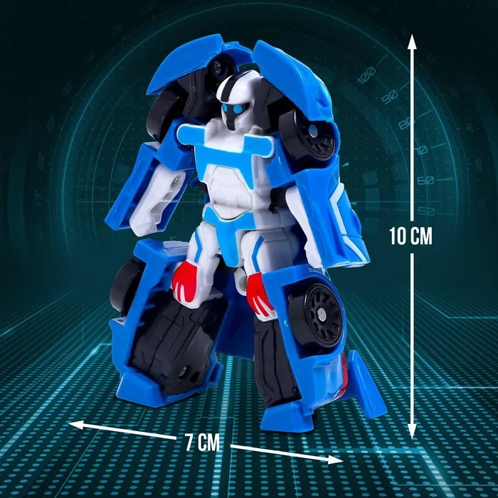 - Размер в виде машины: 10 × 5 × 3 см. В виде робота: 7 × 3 × 10 см.