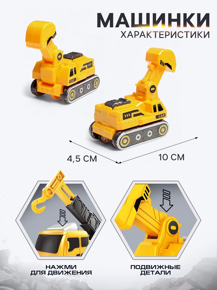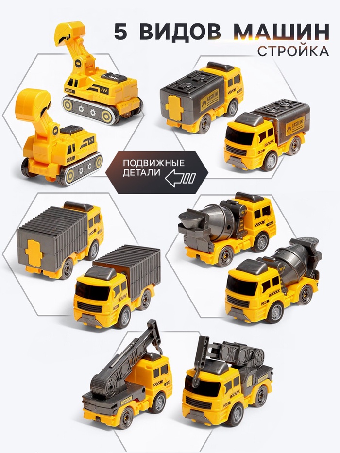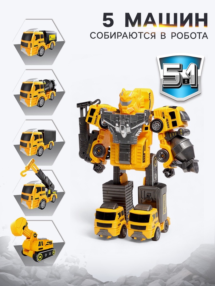 Робот-трансформер «Стройбот» 5в1, собирается из 5 машинок, подвижные детали — Характеристики