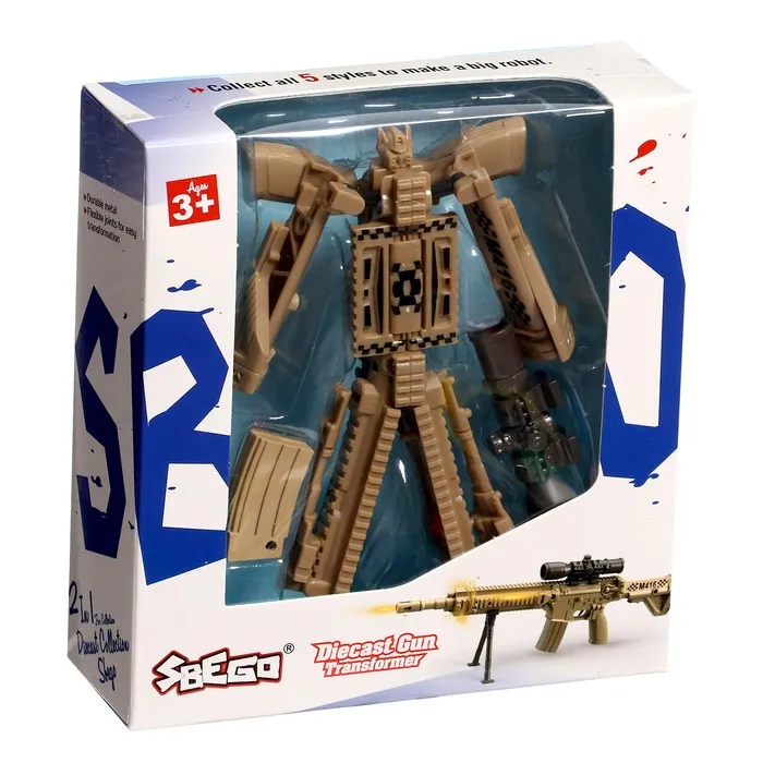 Трансформер в виде оружия станет отличным выбором для юных фанатов роботов и коллекционеров. Модель легко превращается из боевого робота в винтовку, радуя ребёнка неожиданными изменениями формы. Простая конструкция без лишних деталей подойдёт даже для самых маленьких любителей трансформеров.