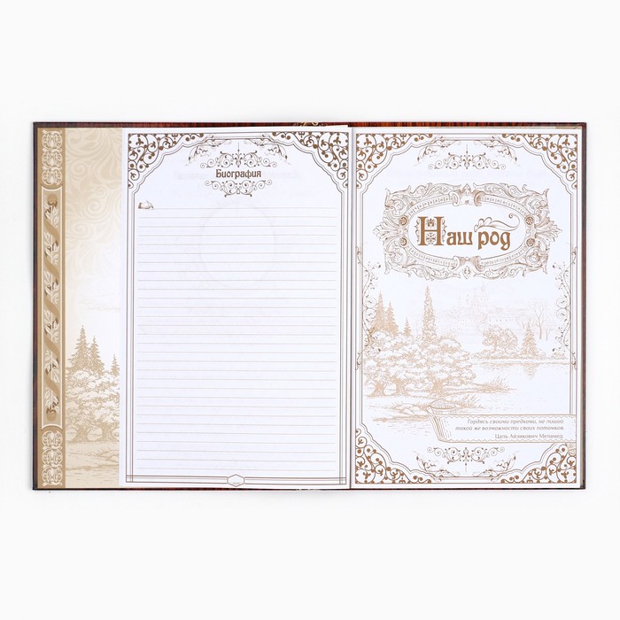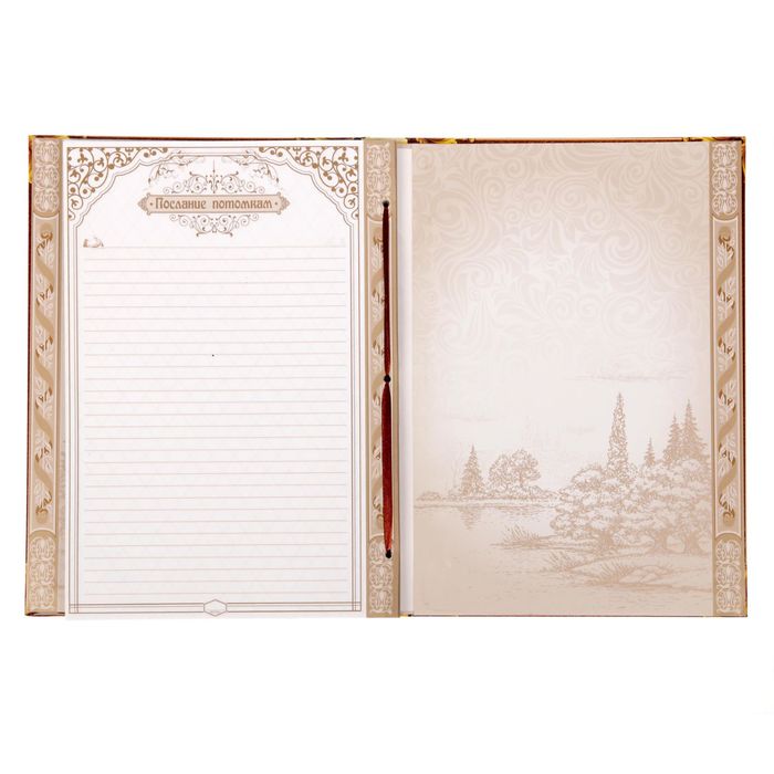 Семья — главное богатство в жизни человека! Сохранить традиции, записать историю поколений и передать их по наследству поможет родословная книга. Она содержит 50 листов (включая инструкции и наименования частей альбома), скреплённых между собой атласной лентой.