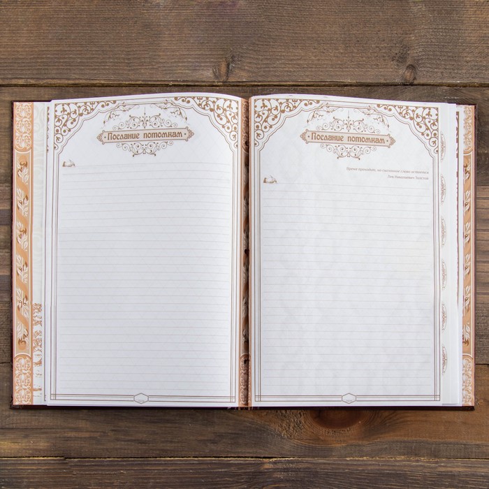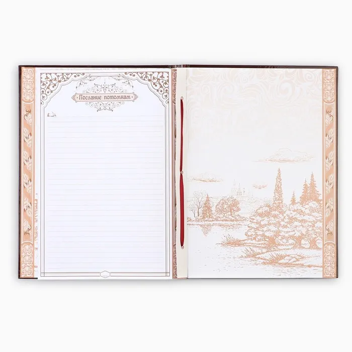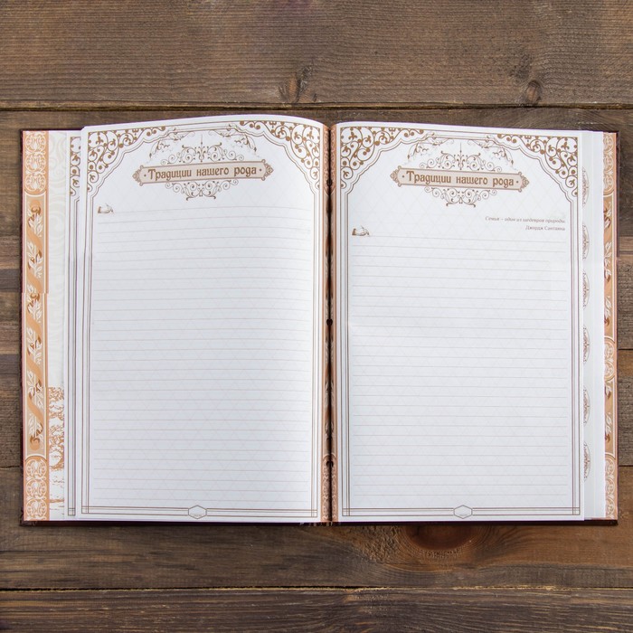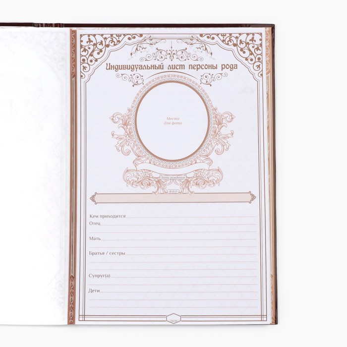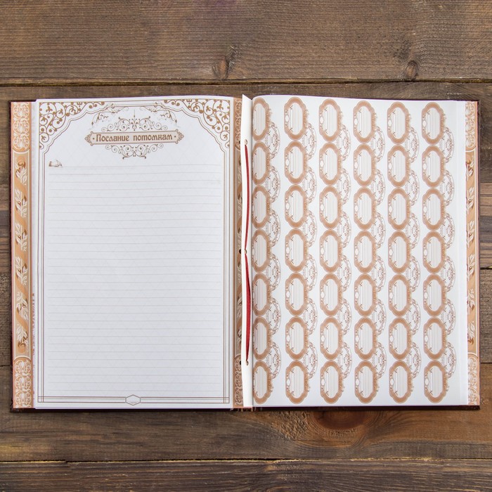 Семья — главное богатство в жизни человека! Сохранить традиции, записать историю поколений и передать их по наследству поможет родословная книга. Она содержит 50 листов (включая инструкции и наименования частей альбома), скреплённых между собой атласной лентой.