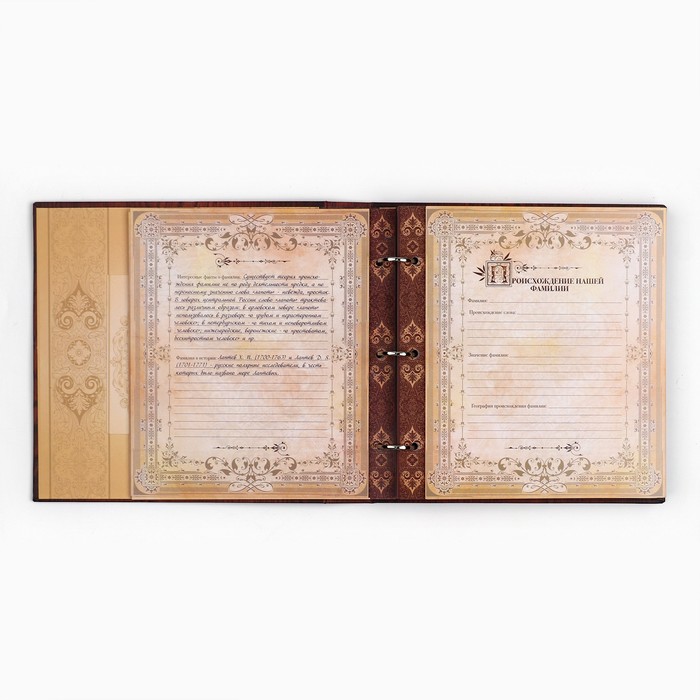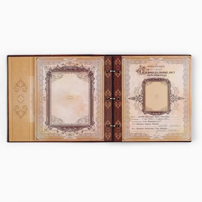 Семья — самое ценное, что есть в жизни человека. Кто из нас не хочет оставить память о себе и своей семье будущим поколениям? Ведь история может быть поводом для гордости! Для создания летописи вам пригодится родословная книга с местом под общее фото на обложке. Том хранится в изысканном футляре, который защитит страницы от повреждений. Книга оберегает важную информацию и помогает шаг за шагом погружаться в прошлое.