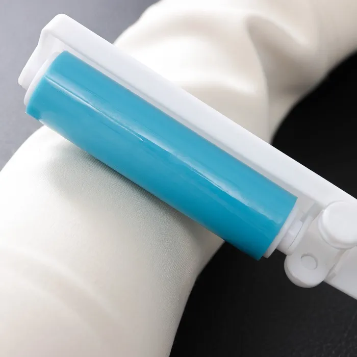 - Липкий ролик для чистки одежды изготовлен из специального силикона, к которому прилипают загрязнения как к магниту.