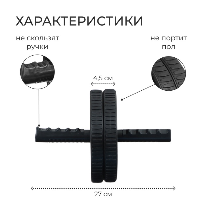 Ролик для пресса ONLYTOP, 2 колеса, 20х17х17 см, цвета МИКС — Характеристики