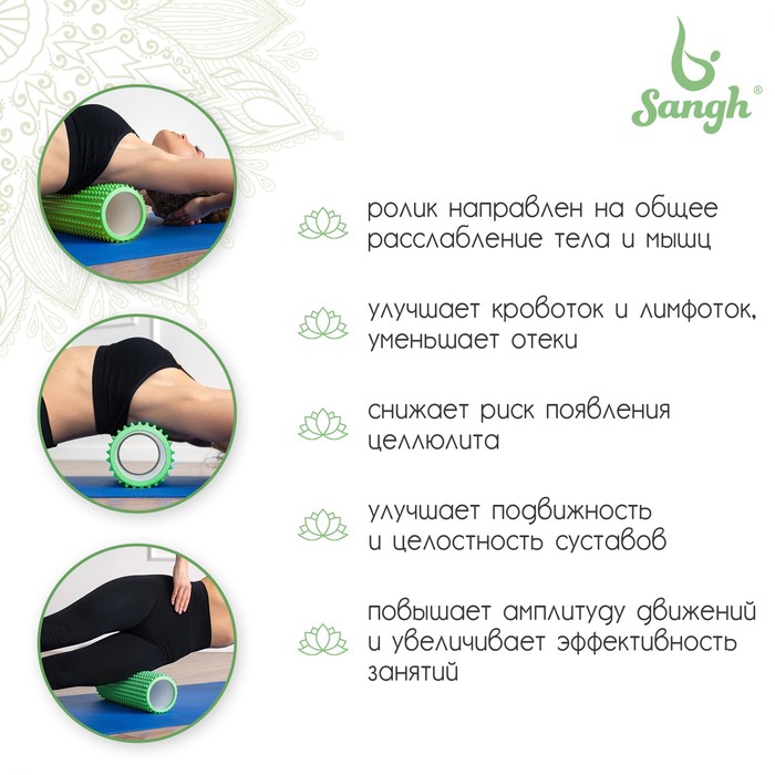 Ролик массажный Sangh, 33х12 см, цвет зелёный — Характеристики
