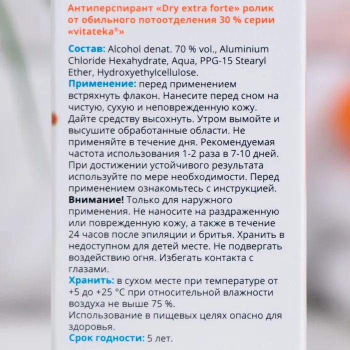 Ролик от отбильного потоотделения Витатека Драй Экстра Форте 30% нормализует потоотделение, устраняет сильную потливость.
