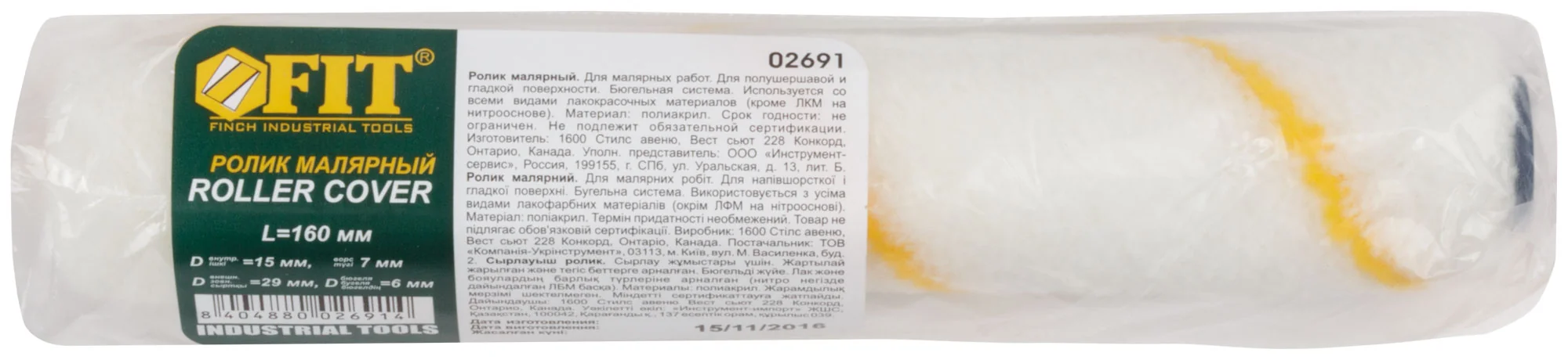 Ролик оснащен полиакриловым ворсом длиной 7 мм, что обеспечивает равномерное нанесение краски и позволяет добиться отличного результата в короткие сроки. Диаметр ролика 15/29 мм и длина 160 мм делают его универсальным инструментом для различных задач.