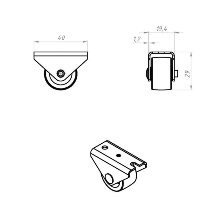 Ролик подходит для выкатной мебели. Он выполнен из прочного пластика и не отставляет следов на мягких напольных покрытиях.