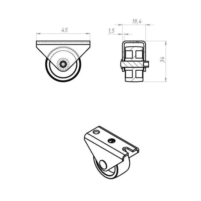 Колесо мебельное 38×38×1.2 мм, d=40 мм, на площадке, без тормоза