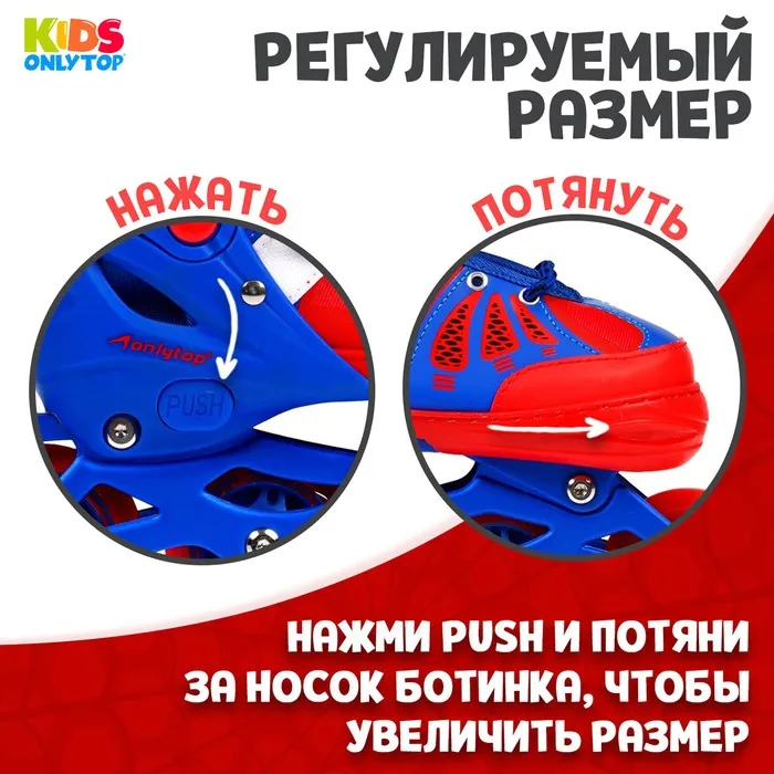 Роликовые коньки раздвижные ONLYTOP, р. 30-33, светящиеся колёса PU 64 мм — Характеристики