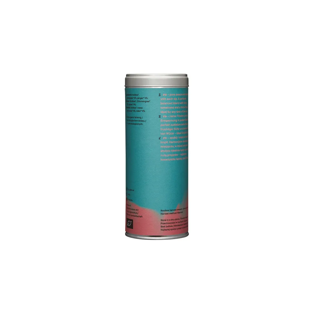 Ингредиенты: органический ройбуш-чай*, лимонная трава* 11 %, имбирь* 9 %.