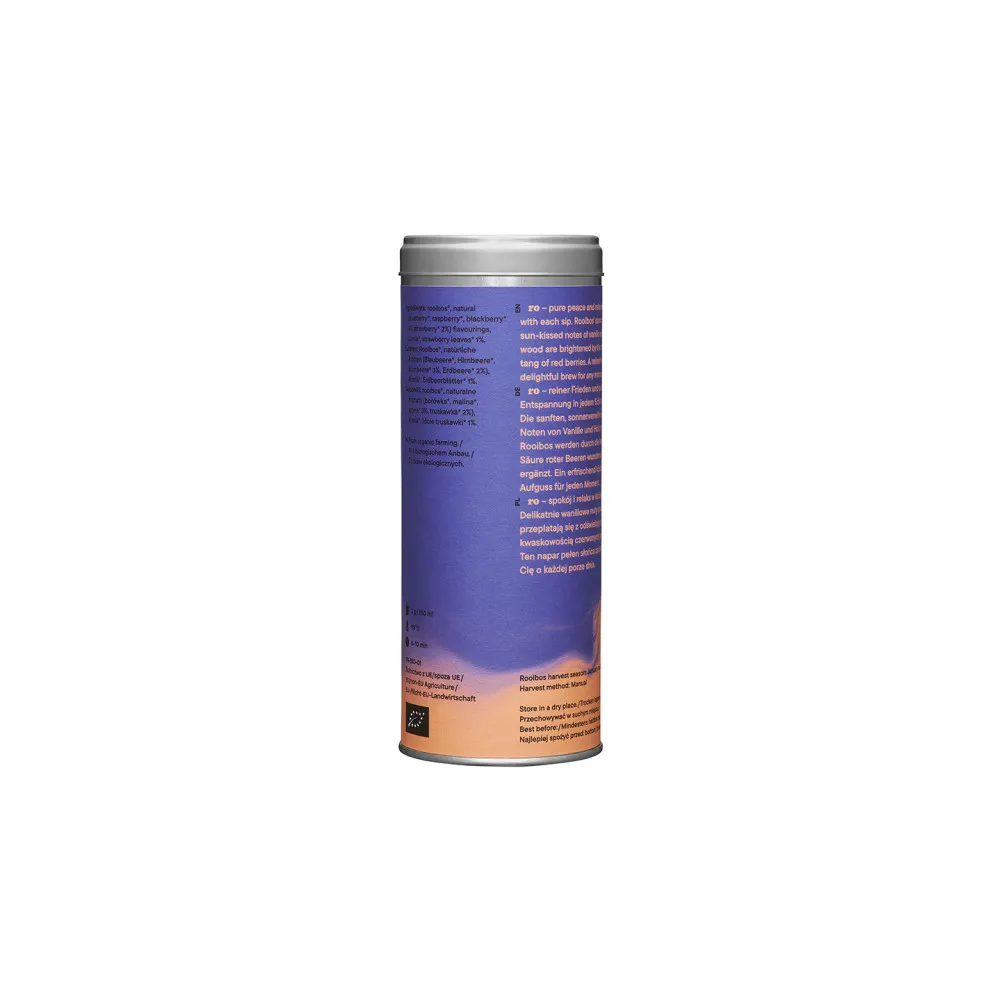 Органический ройбуш-чай с ягодными нотками, сертифицированный по стандарту FR-BIO-01. Обладает мягким и освежающим вкусом, без кофеина. Подходит для любого времени суток.