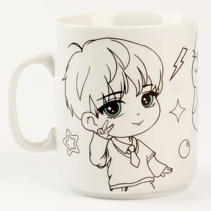 Часть рисунка уже раскрашена, раскрасьте оставшиеся части, и ваша оригинальная кружка готова!