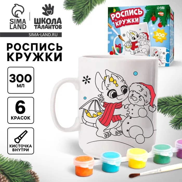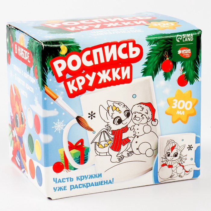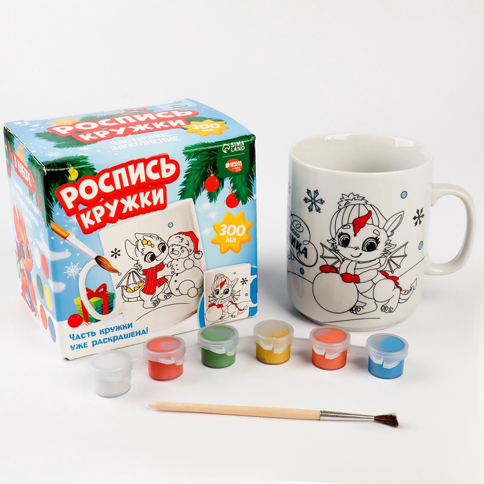 Роспись кружки красками (частичное заполнение) на новый год «Праздник для дракончиков», набор для творчества — Характеристики