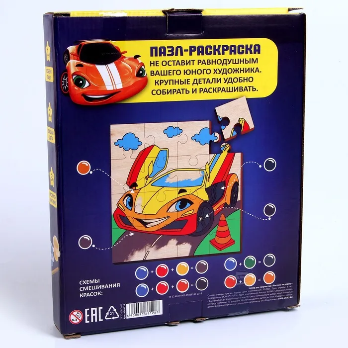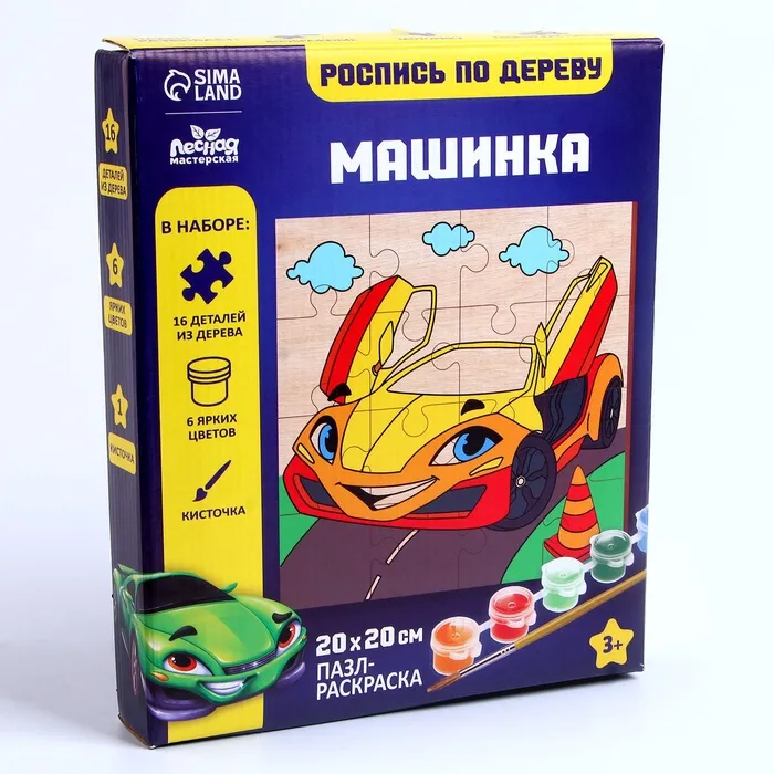 - В комплект входят деревянные пазлы, краски и кисточка, чтобы вы могли раскрасить каждую часть пазла по своему вкусу.