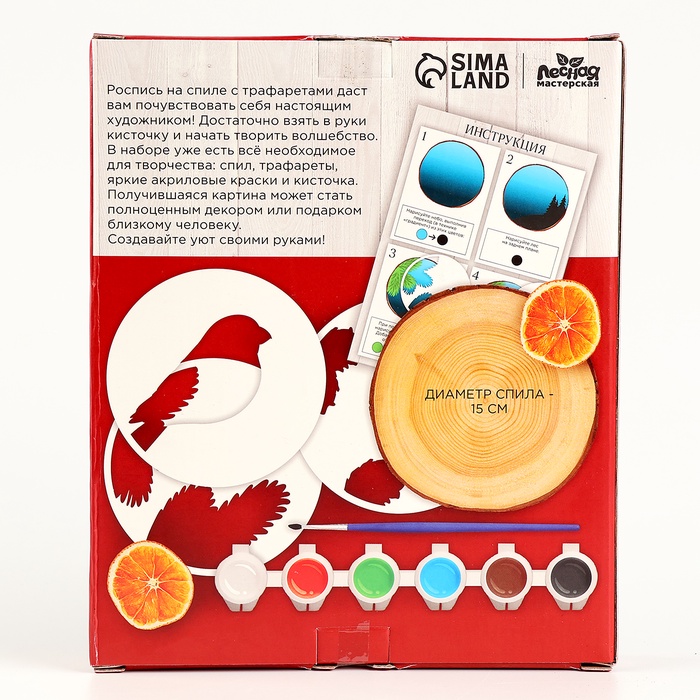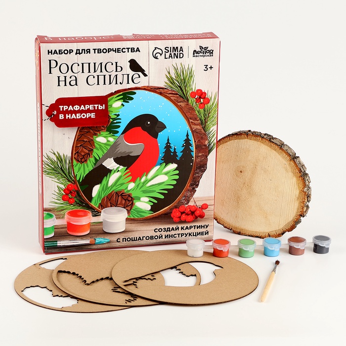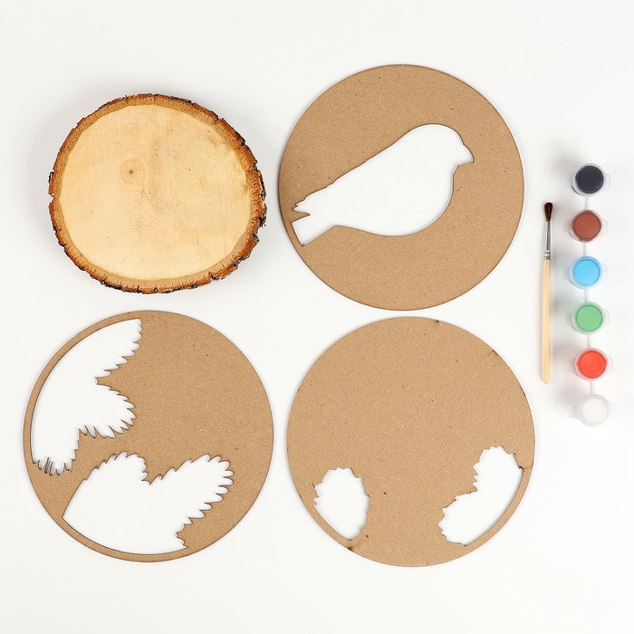Роспись по дереву на новый год для детей. Рисование на спиле «Снегирь», набор для творчества — Характеристики