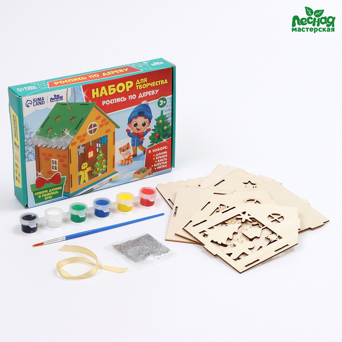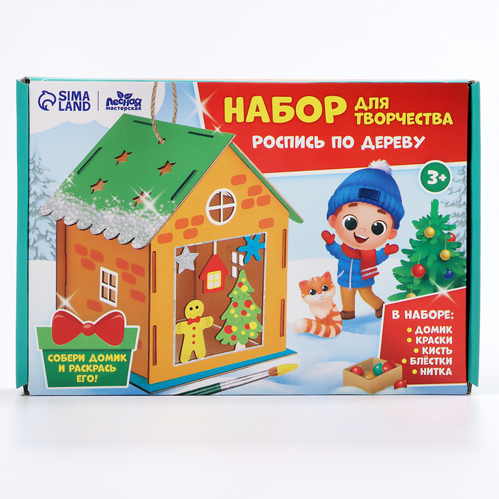 Роспись по дереву на новый год «Домик», набор для творчества — Характеристики