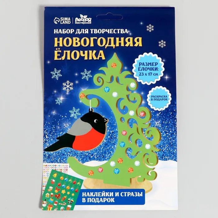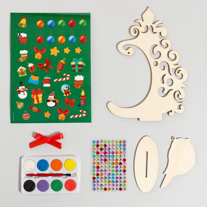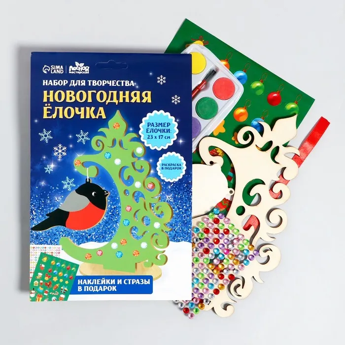 С набором для росписи по дереву у вас получится яркий деревянный сувенир. В комплект входят деревянная заготовка, краски, стразы, наклейки и кисточка.