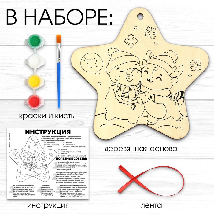 Набор для творчества «Роспись по дереву. Снеговик и олень» создан для любителей картин по номерам. С таким набором вы создадите стильную интерьерную подвеску, которая украсит ваш дом или станет уникальным подарком для близких!