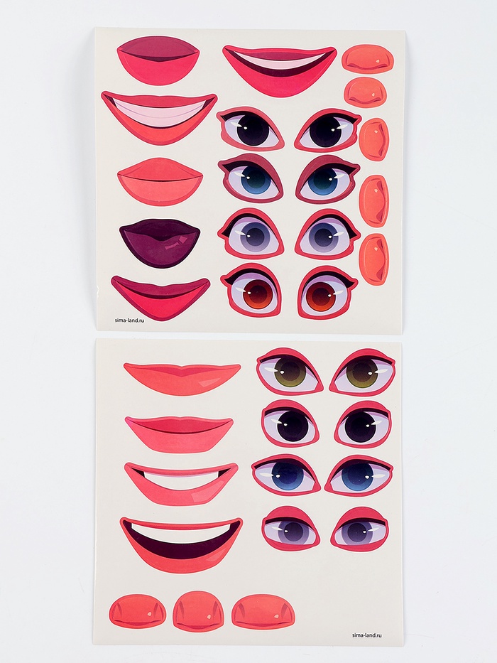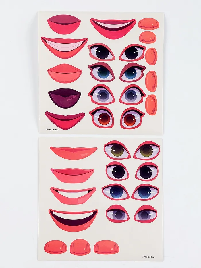 - Оформи лица наклейками из набора! Разные глаза? А может большой нос? Или улыбающийся рот?