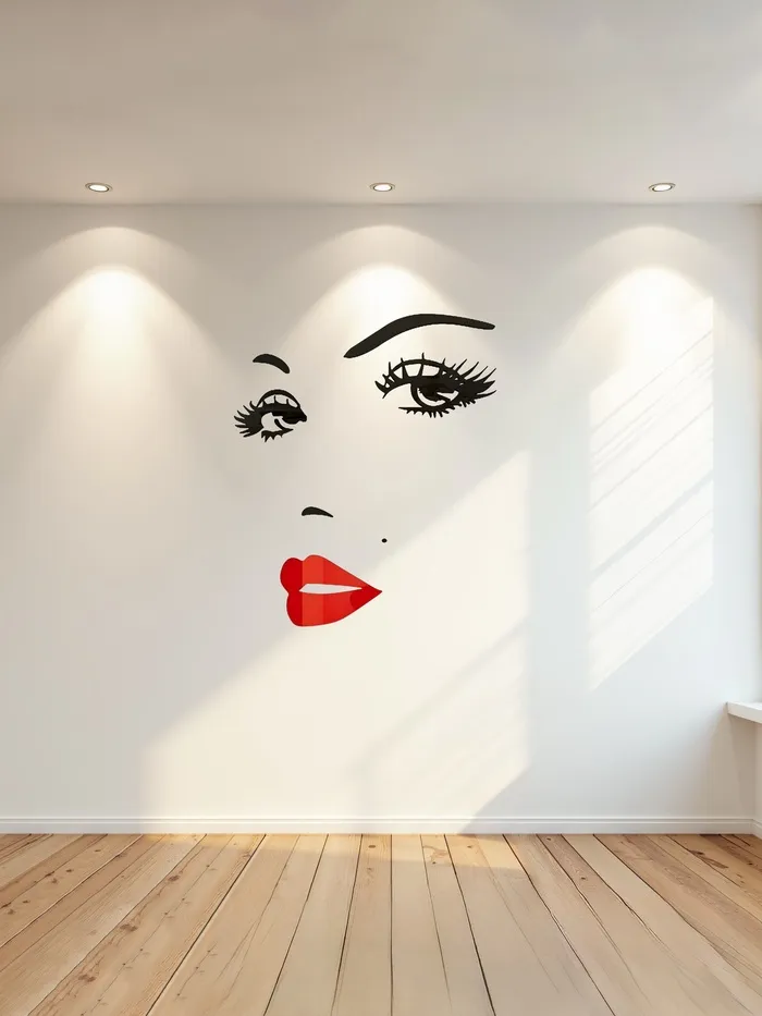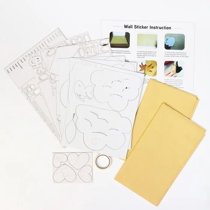 - Приложите наклейку к стене, наметьте место, куда вы хотите её приклеить. При необходимости закрепите её малярным скотчем, чтобы посмотреть издалека, как она будет выглядеть. Если устраивает — начинайте клеить.