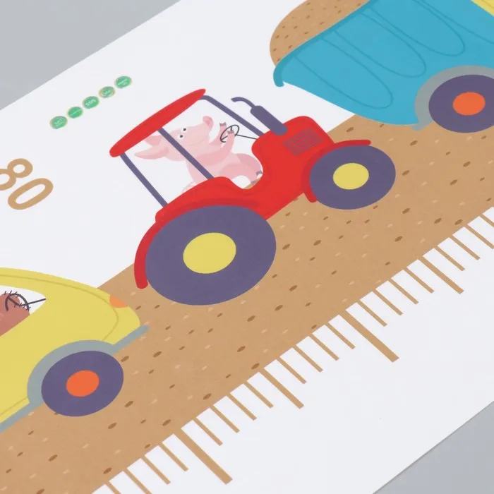 Ростомер-наклейка интерьерная цветная «Животные. Строительная техника», пластик, 30×90 см — Характеристики