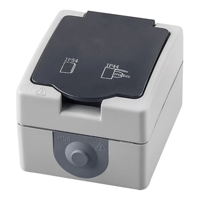 Розетка 1-местная с крышкой с/з, 250В, 16А, серия Велена, PST16-11-54, серый/графит — Характеристики