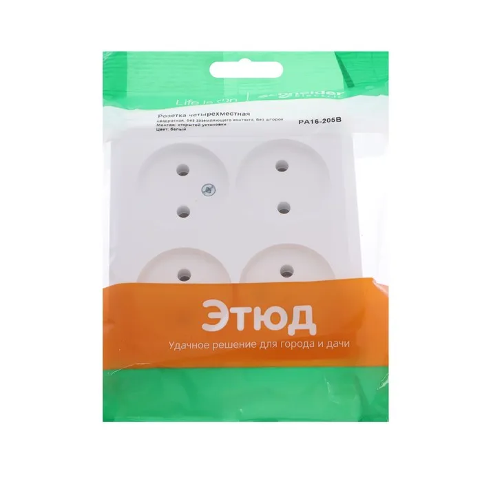 Четырёхместная розетка Schneider Electric "Этюд" без шторок и заземления предназначена для применения в сетях до 250 В (~), с силой тока до 16 А. Четырёхместная розетка позволяет подключить четыре устройства в одном месте. Она проста в установке и удобна в применении.