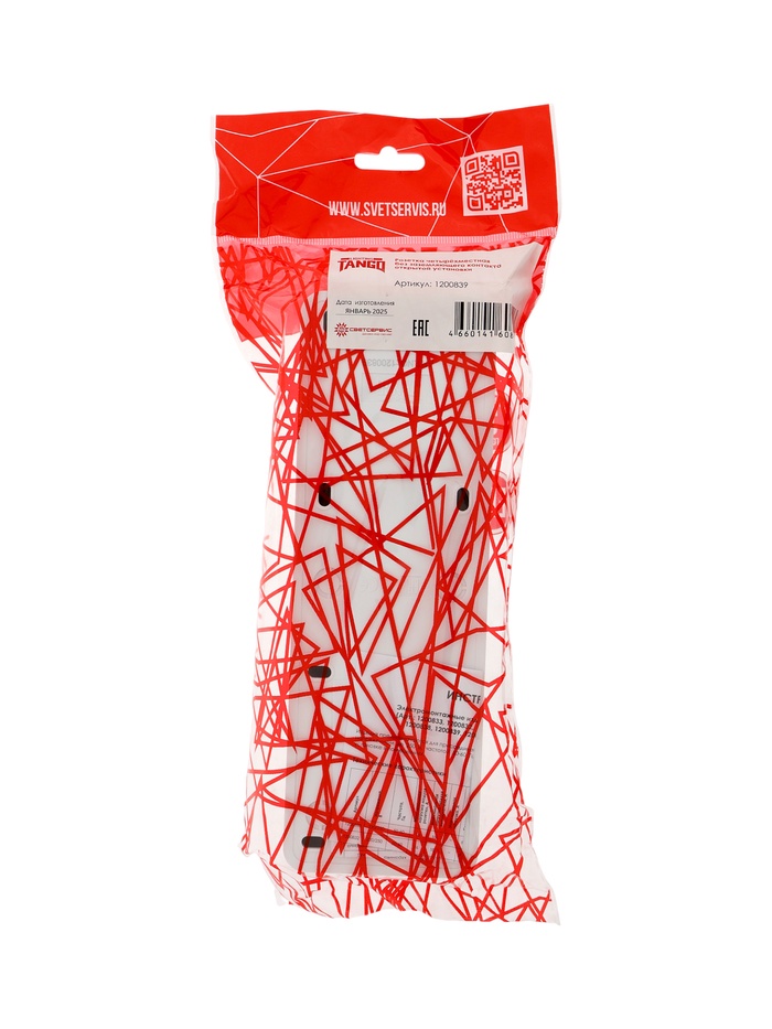 Розетка четырехместная TANGO, 16 А, 250 В, IP20, без заземления, огнеупорный ABS-пластик, белая — Характеристики
