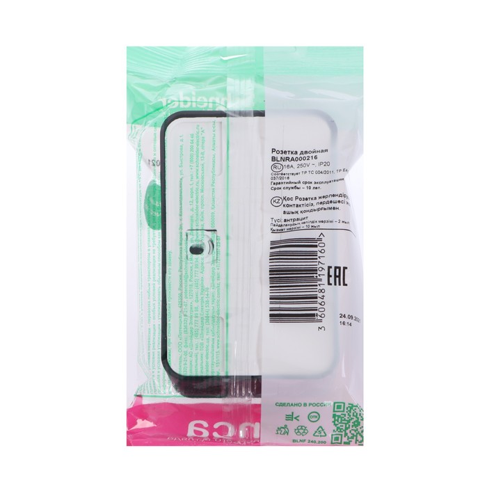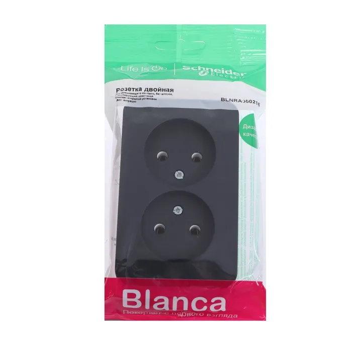 Розетка двойная SE Blanca, 16 А, 250 В, накладная, без з/к, IP20, антрацит, BLNRA000216 — Характеристики