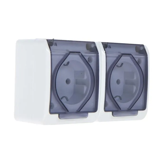 Двухместная розетка предназначена для открытой установки, устойчива к коррозии и механическим повреждениям. С помощью изделия можно самостоятельно изготовить удлинитель. Степень защиты IP44 допускает использование устройства во влажной и пыльной среде.