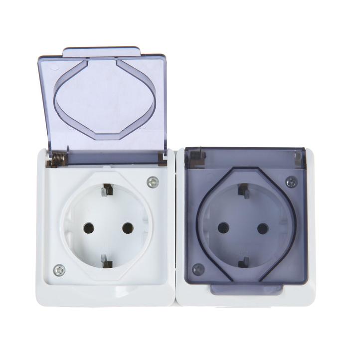 Розетка двухместная, 16 А, накладная, с з/к, IP44, уличная, белая — Характеристики